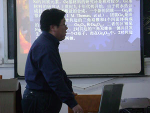 李亚丰教授, 2002年吉林大学化学院获得理学博士学位,主要从事沸石和分子筛的合成,金属有机开放骨架的合成和杂多酸的合成和杂多酸的合成。李教授学术报告题目为“开放骨架结构锗酸盐的结构”,他就锗酸盐结构类型,硼—锗酸盐,锌锗酸盐等几方面做了重点介绍。