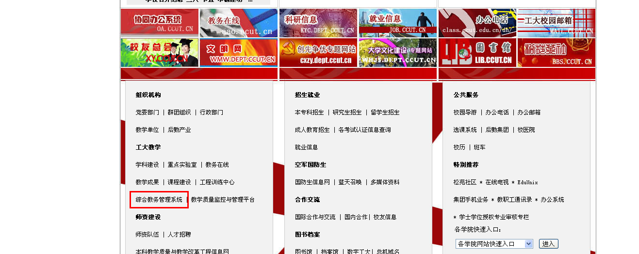 主页”——左下方——“工大教学”——“综合教务管理系统”。如图1。