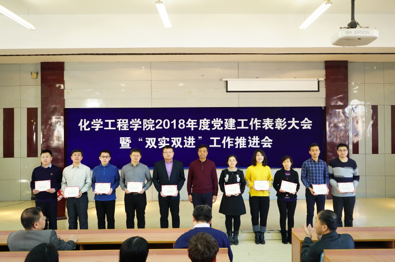 关于表彰2018年度党建工作先进集体和个人的决定》。与会领导为受表彰的集体和个人颁奖。