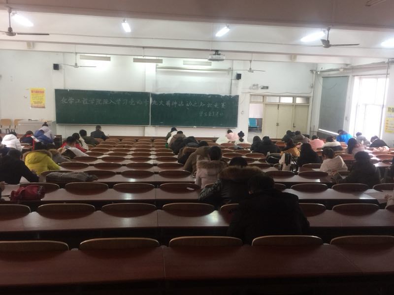 在南湖校区和林园校区同时开展了深入学习党的十九大精神活动之知识竞赛。本次竞赛共设三个开场,分别为教工党员考场,本科生党员考场和研究生党员考场,分别由学院党委书记刘喜明、党委副书记曹永利、辅导员助理赵月监考。