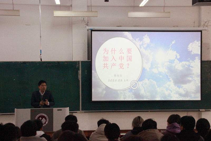 黄向东以《为什么加入中国共产党》为题,结合党史发展脉络与现实使命要求,系统阐释了中国共产党人的初心本源与价值追求。
