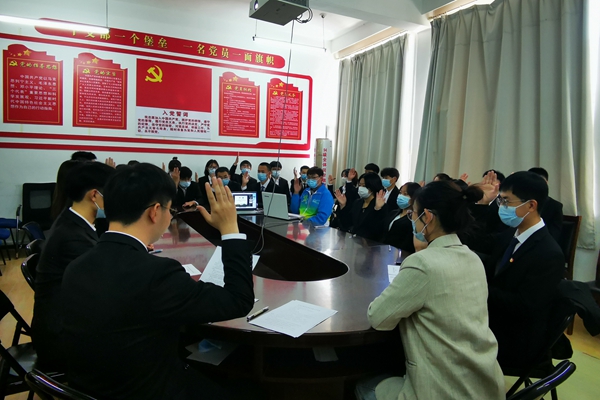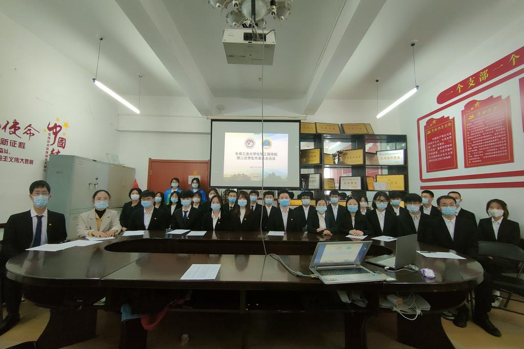学生会章程修正案(征求意见稿)》,等额选举产生了学院学生会主席团成员,推选了出席学校学生代表大会的代表人选。大会在校歌中圆满结束。
