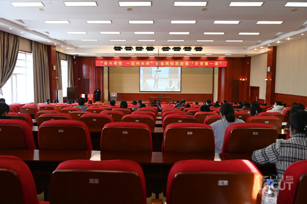 新闻网讯(记者 杨婉琦)为深入学习贯彻习近平新时代中国特色社会主义思想,贯彻落实习近平总书记关于北京2022年冬奥会的重要讲话重要指示批示精神,3月7日下午,学校同步组织收看“奋斗有我 一起向未来”全省高校思政课“开学第一课”直播课程,全校师生通过集中和分散的形式在线收听收看。两百余名教师在学校主会场聆听,两万余名师生同时在线学习。