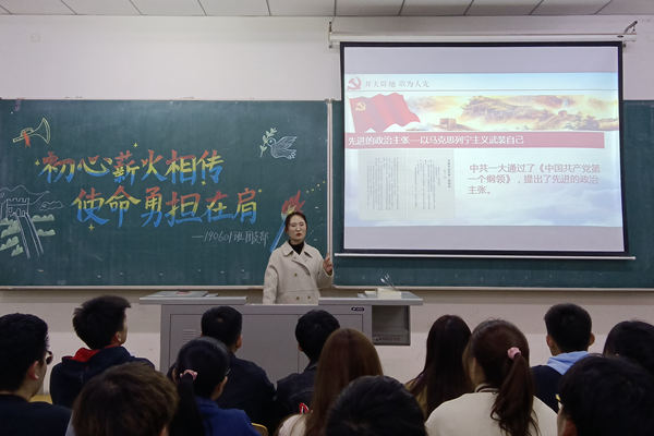 新闻网讯(通讯员 赵龙世纪沧桑巨变,百年风雨兼程。为深入学习贯彻习近平总书记在党史学习教育动员大会上的重要讲话精神将党史学习与大学生思想政治教育相结合。413日,根据学工办“学党史、强信念、跟党走”主题读书活动要求,学院兼职团委副书记、2019级辅导员李秀绒参加190601班主题团课,与同学们分享党史学习。