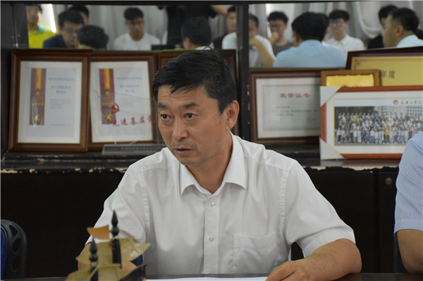 与学生对接表示热烈的欢迎,同时介绍了此次领导干部深入基层联系学生工作的重要意义。随后,对接班级学生代表向对接领导颁发了班级导师聘书,170603班团支部书记刘香池作为对接班级学生代表进行发言。最后,校长张会轩代表对接领导进行了讲话。张校长希望我们的学生要拥有工大青年人的“四个自信”,既对自身的自信、对老师的自信、对学校的自信、对未来的自信。并要求各位对接工作的领导老师们要主动走近青年、倾听青年、教育青年、引导青年,做青年成长的引路人,同时希望对接班级的同学们要积极与老师进行沟通交流,全面发展自己,努力成长为祖国的栋梁之材。