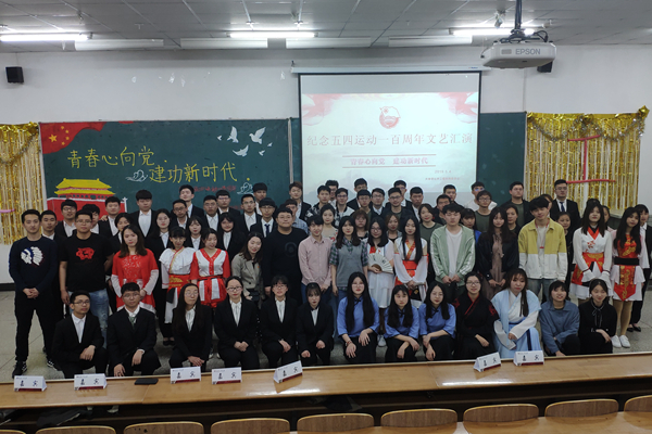 团委5月4在北湖校区西阶102举行“青春心向党,建功新时代”主题文艺汇演。校团委会常务学生副书记付中礼、校学生会秘书长巨盟池、校社团联合会副主席周雨晴,学院十届三任团委副书记万义、学院主要团学干部及2018级全体同学参加了本次汇演。2018级申沛航、郭芯潼担任主持。
