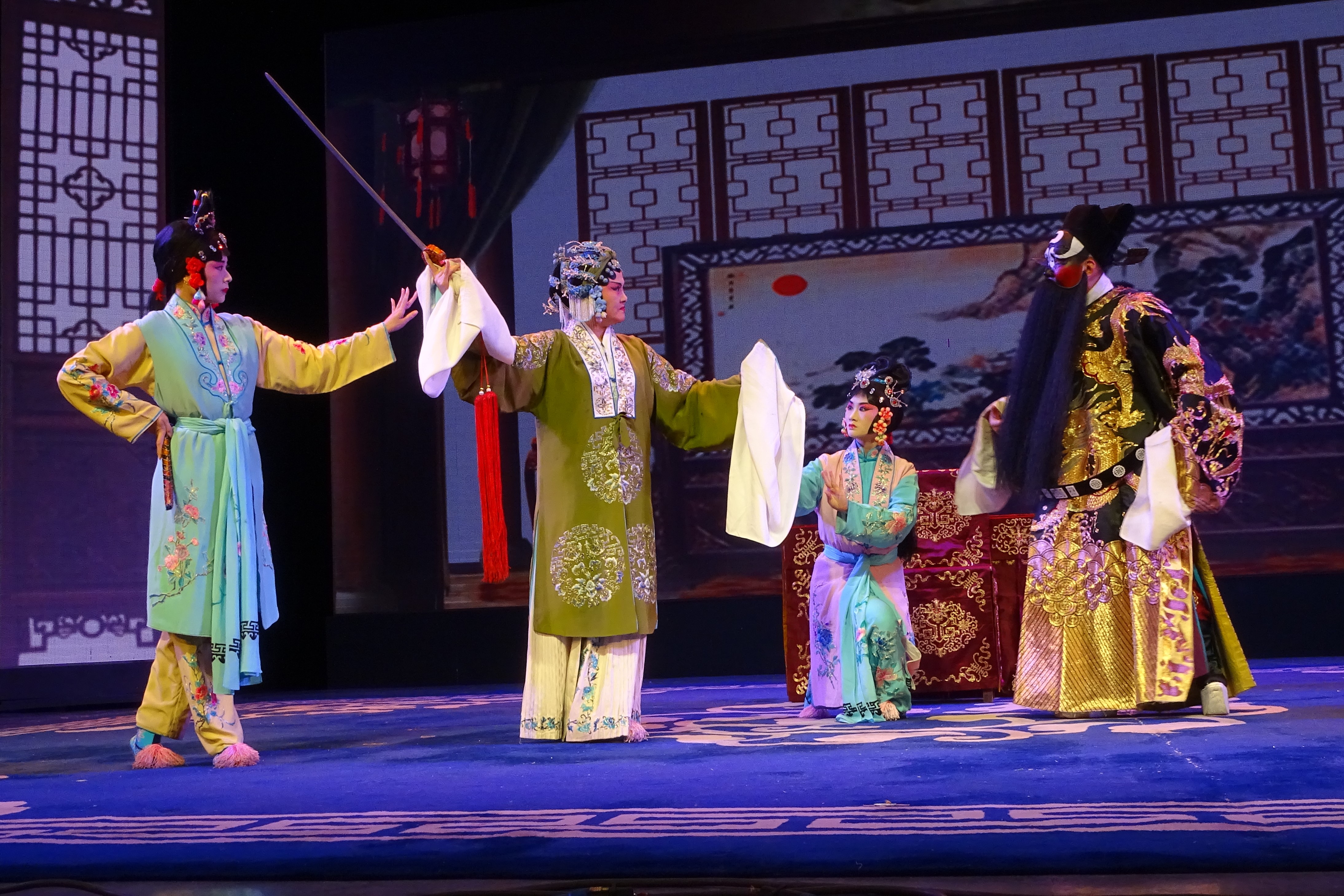本次折子戏表演共分为三场,其中《燕青卖线》向大家再现了燕青坚持攻心晓以大义,终使任秀英献帖请罪,情愿里应外合,共同破敌的故事;《包公赔情》一剧则歌颂了包公不徇私情,爱国爱民的为官作风;《寿州救驾》为同学们讲述了高俊保被困寿州,妻子刘定金亲自挂帅前往营救的英勇事迹,及其生动地刻画了一位凛然正气的巾帼女将形象。三场折子戏以其婉转的曲调,优美的语句,跌宕的剧情将观众们带入其中,让同学们切身体会到中华传统文化的博大和精美。