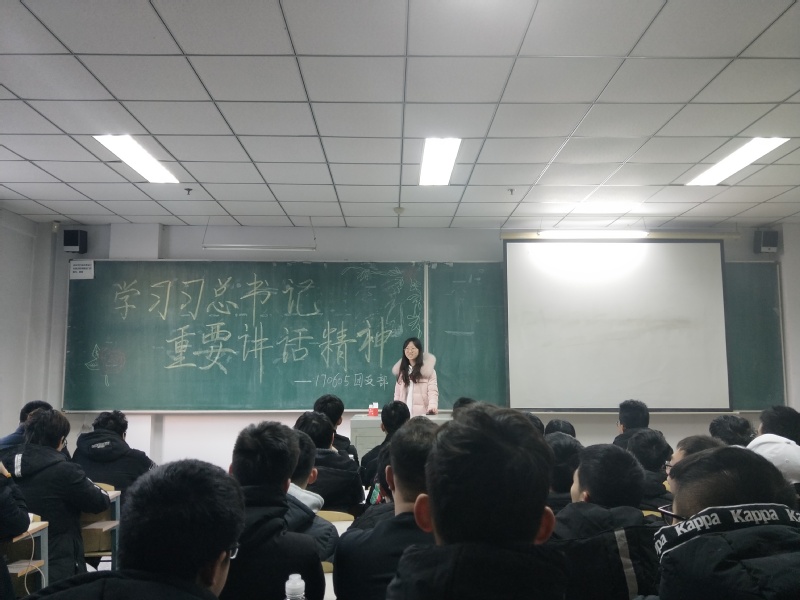 会上,团支部书记王星艺首先就习近平总书记系列重要讲话精神做了深刻的阐述,着重强调了新时代习近平总书记对青年人的几点希望。随后,实践委员陈颖带领大家针对习近平新时代中国特色社会主义思想进行了讨论研习,大家表示:要把个人的小梦想积极融入到国家的大梦想之中,这样才会握住时代脉搏。最后,团支部副书记宋涛告诫团员青年要在思想上和行动上更加自觉地同党保持高度一致,在学习中坚定理想信念。