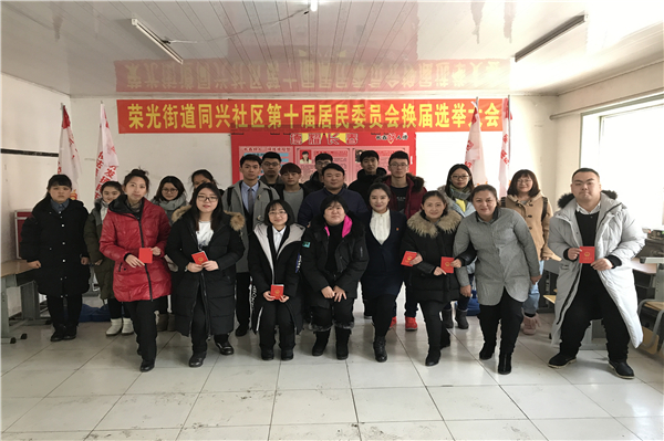 新月志愿者协会志愿者来到长春市二道区荣光街道同兴社区观摩社区第十届居民委员会换届选举大会,并为大会提供志愿服务工作。