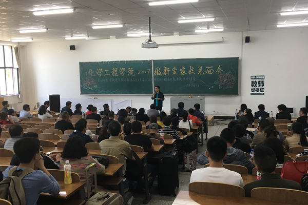 新生入学报到的日子,为了更好的让学生家长了解院史院情,对子女即将到来的大学生活更加放心,学院迎新当天在北湖校区西阶101教室举行新生家长见面会。学院党委书记刘喜明、院长张龙、副书记曹永利、副院长杜长海、谭志勇及各系主任、书记、全体辅导员和部分新生家长参加了见面会。见面会由学生党支部书记、2017级辅导员董广通老师主持。