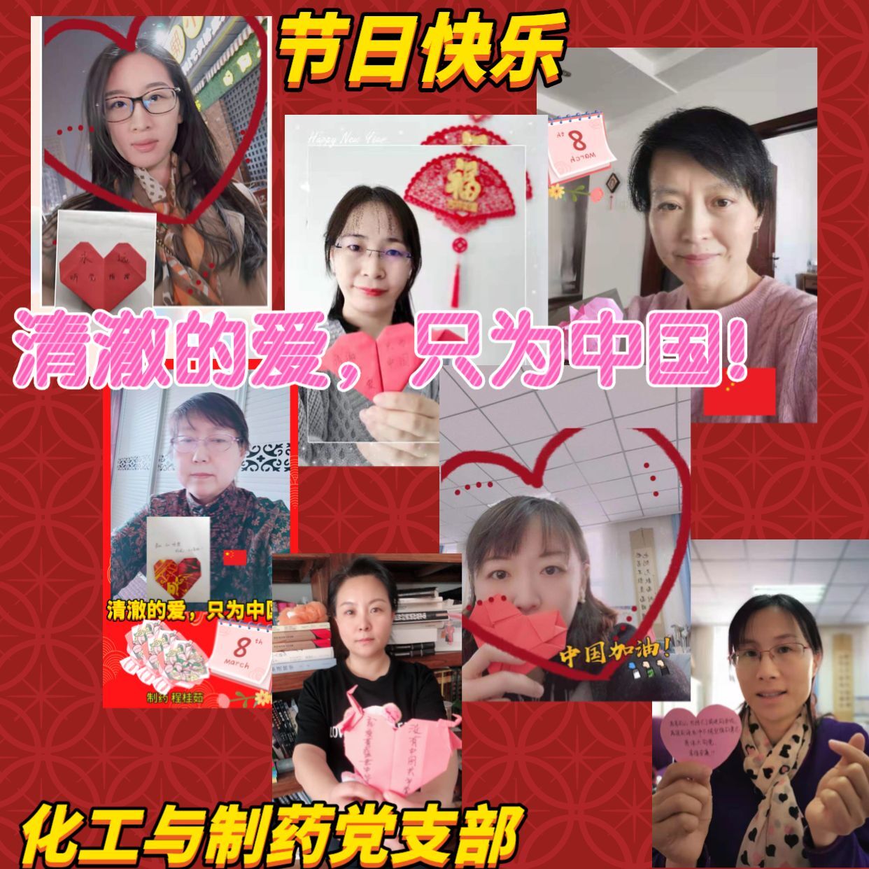 妇委会举办了“满怀清澈的爱,喜迎建党100周年”主题活动,女教职员工通过剪纸、绘画、寄语、诗朗诵、书法艺术等形式开展了丰富多彩的庆祝活动,展示女教职员的风采,展现了饱满的姿态,全身心地投入学习工作中去,迎接建党100周年。