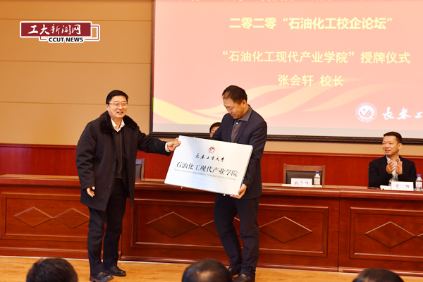 张会轩向“石油化工现代产业学院”院长吴广峰授牌