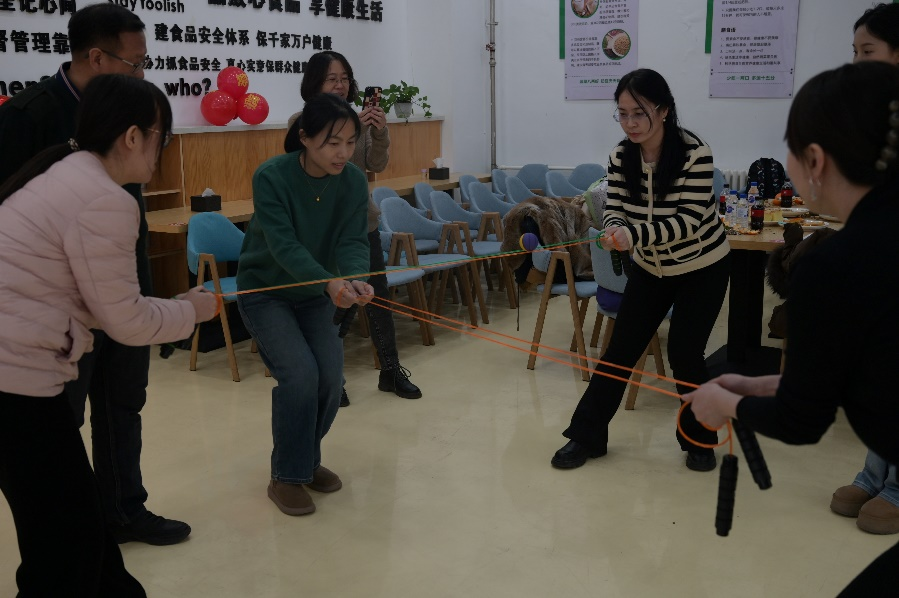 随后,晚会以“搓纸条”游戏拉开了游戏环节的序幕。紧接着,“纵横天下”、“十指同心”等轻松有趣的小游戏轮番上演,不仅舒缓了教职工在过去一年里紧张的工作情绪,更为大家提供了相互交流和增进友谊的宝贵机会。