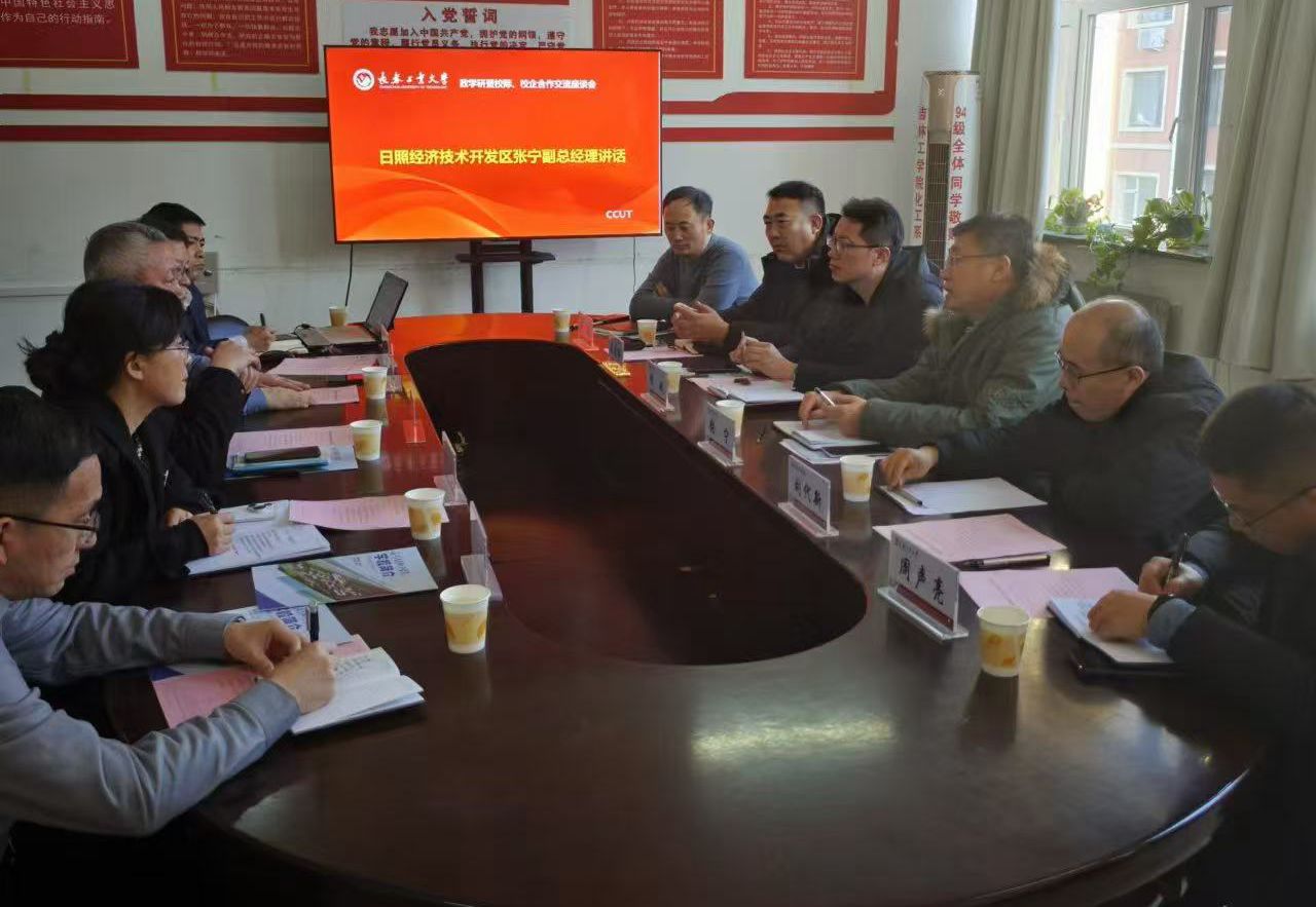 座谈会上,杨文龙书记对日照城投集团有限公司一行的到来表示热烈的欢迎,并简要介绍了学院的发展历程和基本情况。随后,高光辉院长详细阐述了学院在教学、科研以及人才培养方面所取得的成就和特色,并分享了学院在推动产学研一体化发展方向的经验和做法,希望能通过交流研讨,积极发挥学院自身优势,与企业开展深度合作,共同培养更高素质的人才。