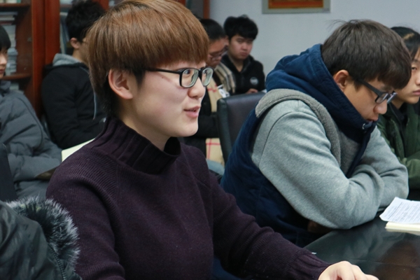 专题学习前全体支部团员齐唱团歌,在歌声中同学们深刻体会到身为当代大学生要时刻牢记命,不忘初心。随后,同学们从习近平在十九大报告中讲话“青年兴则国家兴,青年强则国家强。青年一代有理想、有本领、有担当,国家就有前途,民族就有希望”中引出了学习会的话题“理想、本领和担当”。陈安琪同学为大家简单讲述了《习近平的七年知青岁月》中的故事,告诉同学们要学会在艰苦的环境中磨练自己,树立远大的理想;鲁雍胜同学则从专业学习上说明了青年人如何锤炼过硬本领,并向同学们介绍习近平总书记的求学之路也是同我们一样,也是从专业学习开始;丁文贺同学则从学生的担当、子女的担当谈到了我们要勇于承担实现中华民族伟大复兴中国梦的担当。