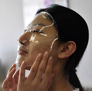 面膜采用紫外固化交联连续化生产技术制备,以生物相容性的亲水性凝胶为主要基质,具有果冻般的质感,内部富含大量皮肤所需的营养成分和水分,无刺激性和毒性。相较于传统材质面膜,具有较强的敷贴性和凝集水分的功能,可持续为肌肤补水。此外,内部精华成分不易蒸发、干燥,也不会产生倒吸,具有较好的渗透能力,有利于肌肤对精华液的吸收。可根据肌肤需要,向水凝胶面膜内注入胶原蛋白、透明质酸、熊果苷、烟酰胺等有效成分,在贴附过程中,面膜会通过体温慢慢溶解内部添加精华成分,然后被皮肤吸收,从而达到深层护肤的目的。
